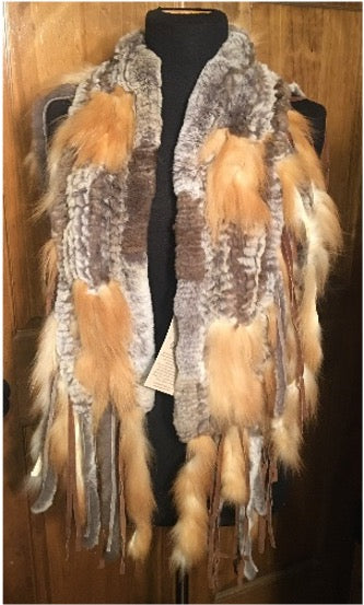 Fringed Rex Rabbit and Fox Shawl