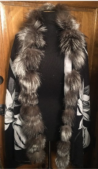 Reversible Fox Trim Cashmere Blend Shawl